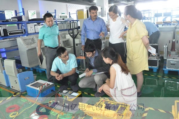 此次他們來我公司主要考察互感器類和SF6測試儀系列產品,他們用了整整一天的時間詳細的了解了這兩個系列產品的功能特點及使用方法,我公司技術人員現場演示了這些儀器操作的全過程,在演示過程中,他們不斷的提出他們的疑問,我公司技術人員耐心的對他們的提問進行了詳細的解答。