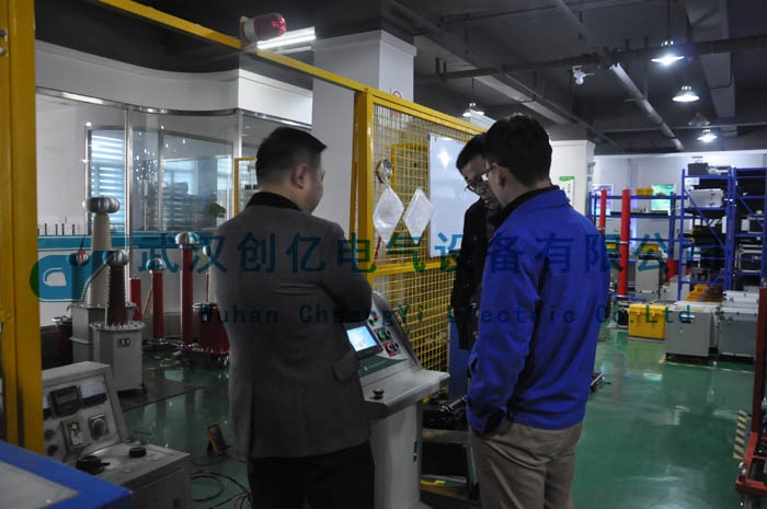 參觀完我公司后,客戶一行對我公司的行為規(guī)范和規(guī)模有了一致肯定。提出想檢測由我公司生產(chǎn)的智能耐壓試驗(yàn)裝置。過后技術(shù)工程師就為客戶現(xiàn)場檢測了我公司自產(chǎn)的CYYD系列智能耐壓試驗(yàn)裝置。