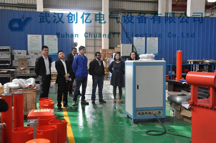 昨日,創(chuàng)億電氣迎來了印度客戶Vijay的來訪。該客戶在我司訂購了一套CYTF-4500KVA/750KV的變電站變頻串聯(lián)諧振試驗(yàn)裝置,而此次來訪的主要目的是驗(yàn)貨。此次客戶采購此套設(shè)備主要是用于400KV GIS設(shè)備的測試。