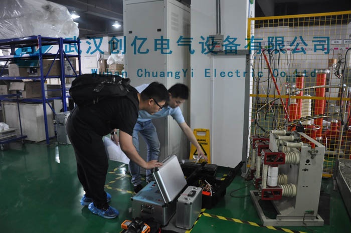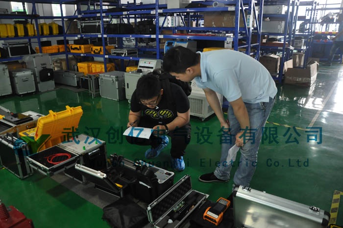 前段時間,銷售部傳來喜訊我司中標北方國際一批設備。近日,在我司各部門的通力配合下,貨已經全部備齊,并邀請了張工前來我司驗貨。接到張工后,我們先去廠房檢驗了耐壓等大型設備,然后我們公司的辦公區車間檢驗CYJB-1200A繼保、CYKC-6A斷路器動特性測試儀等的小型設備。
