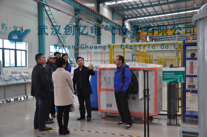 我司接待人員于火車站接到客戶后,即前往我司生產廠房進行了參觀。在參觀的過程中,客戶詳細了解了我司的GIT以及耐壓等設備,并對我司的安全工器具系列的產品表現除了極大的興趣。最后參觀了我司正在生產的大電流設備。
