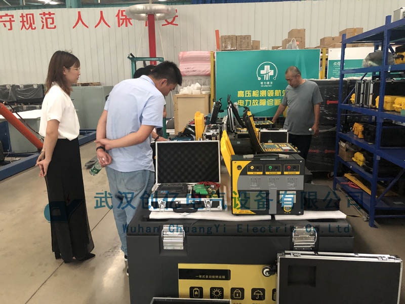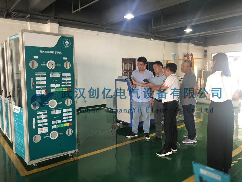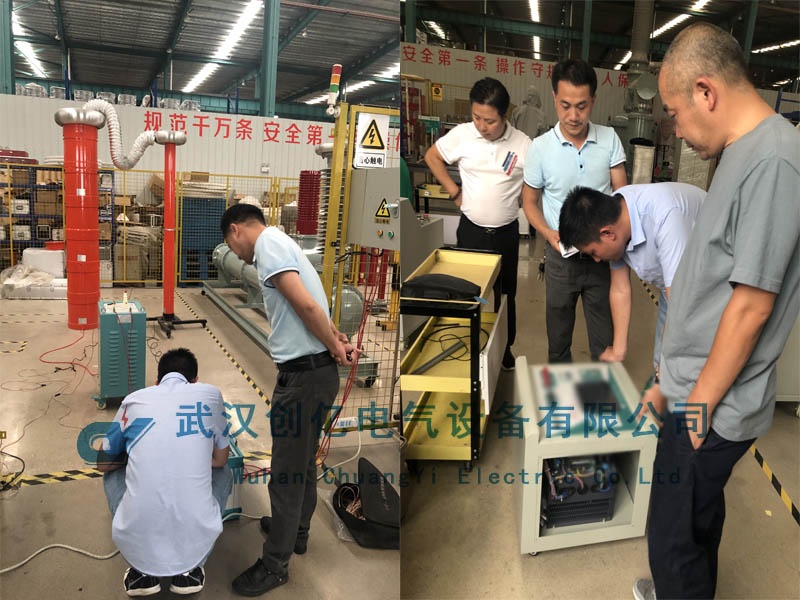 隨后一同前往生產車間詳細了解我們的生產流程、裝配過程、質檢程序等內容。在生產車間,我們的技術員對其客戶感興趣的CYTF系列串諧試驗裝置做了實地演示。