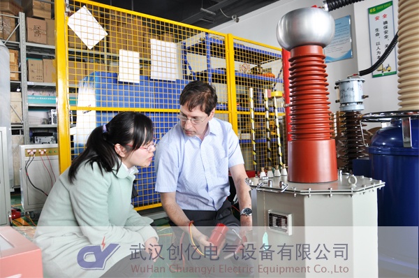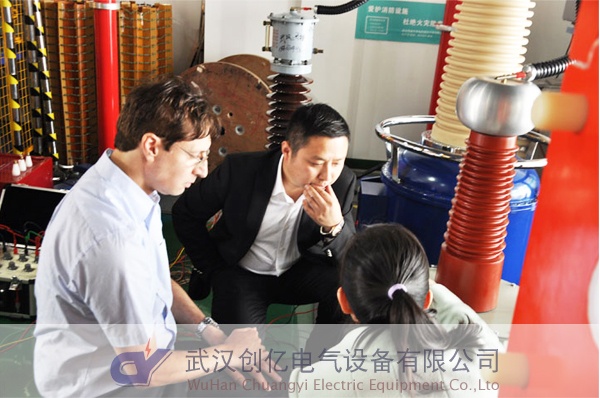 他們此行主要目的是考察串聯(lián)諧振和變壓器類系列產(chǎn)品,針對(duì)Lalit告知其被試品是發(fā)電機(jī),需要對(duì)其做局放耐壓試驗(yàn)。要滿足發(fā)電機(jī)單相對(duì)地時(shí)做耐壓試驗(yàn),又滿足三相一起做耐壓試驗(yàn)。通過與客戶進(jìn)行詳細(xì)深入的技術(shù)溝通后,最終給客戶選定1200kVA/60kV工頻串聯(lián)諧振試驗(yàn)系統(tǒng)。Lalit也非常贊許!隨后他還詳細(xì)看了超低頻、回路、互感器等設(shè)備,并一一為其做了演示試驗(yàn)。在考察的過程當(dāng)中他們都聽得特別認(rèn)真仔細(xì),還生怕漏掉了哪個(gè)環(huán)節(jié),時(shí)不時(shí)拿出相機(jī)來拍照,做錄。