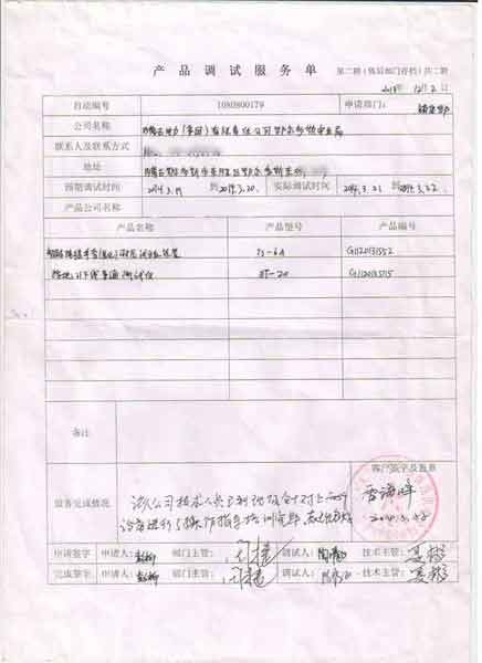 2014-03-21 內蒙古鄂爾多斯電業局進行調試服務,調試產品:CYJS-6A智能絕緣手套(靴)耐壓試驗裝置 CYDT-20接地引下線導通測試儀