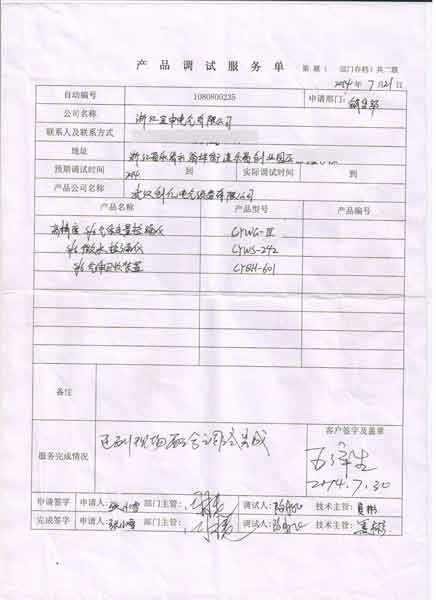 2014-07-21 浙江寶申電氣進行調試服務,調試產品:CYWG-III 高精度SF6氣體定量檢漏儀 CYWS-242 SF6微水測量儀 CYQH-601 SF6氣體回收裝置