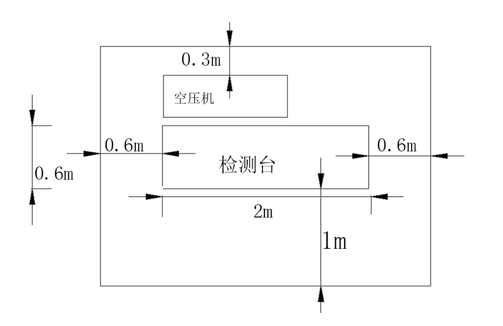 本檢測(cè)臺(tái)工作時(shí)應(yīng)使正面、背面及側(cè)面留有足夠的工作空間,便于檢測(cè)臺(tái)的操作、拆卸檢修、清理等工作,如圖1所示。